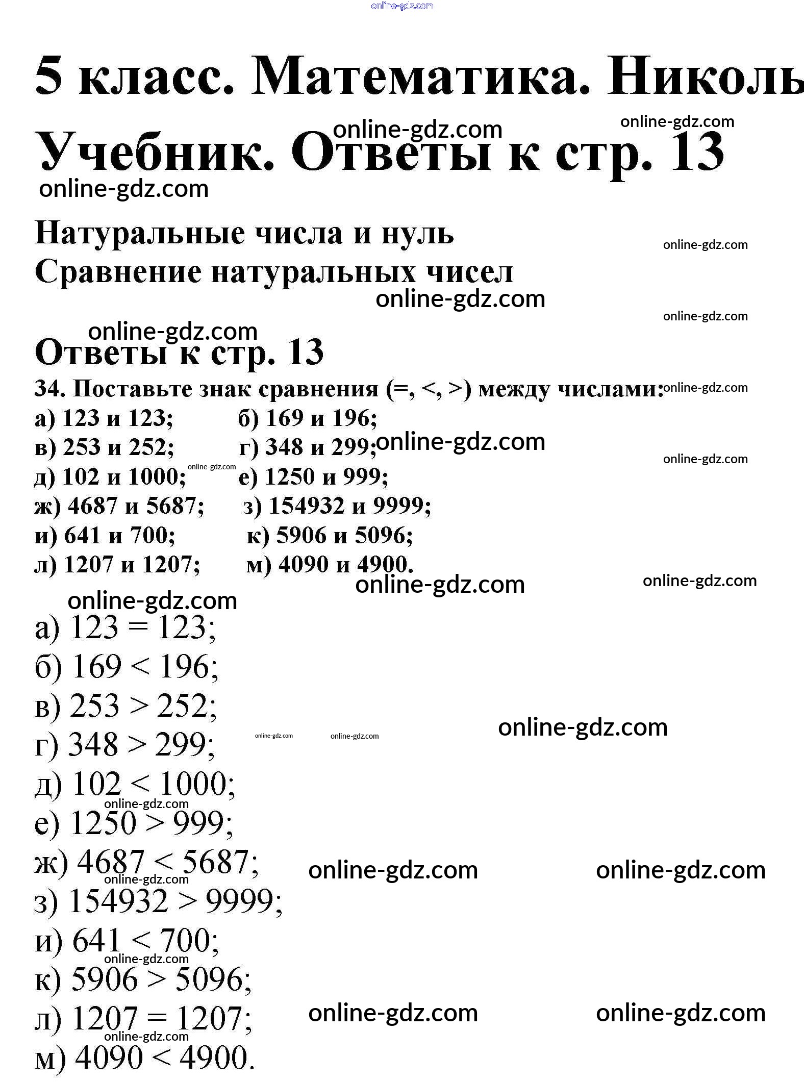 Готовые домашние задания по Математике за 5 класс Учебник Никольский, Потапов МГУ - школе 2016 - Упражнения 34