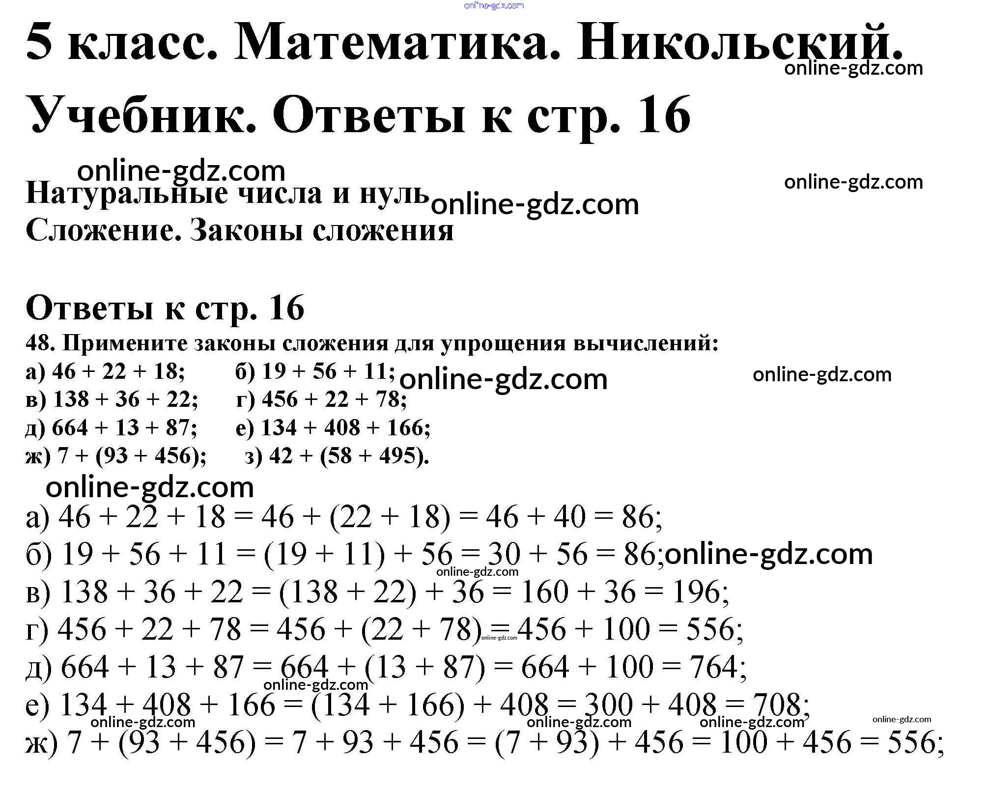 Готовые домашние задания по Математике за 5 класс Учебник Никольский, Потапов МГУ - школе 2016 - Упражнения 48