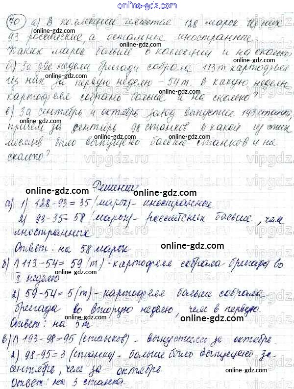 Готовые домашние задания по Математике за 5 класс Учебник Никольский, Потапов МГУ - школе 2016 - Упражнения 70
