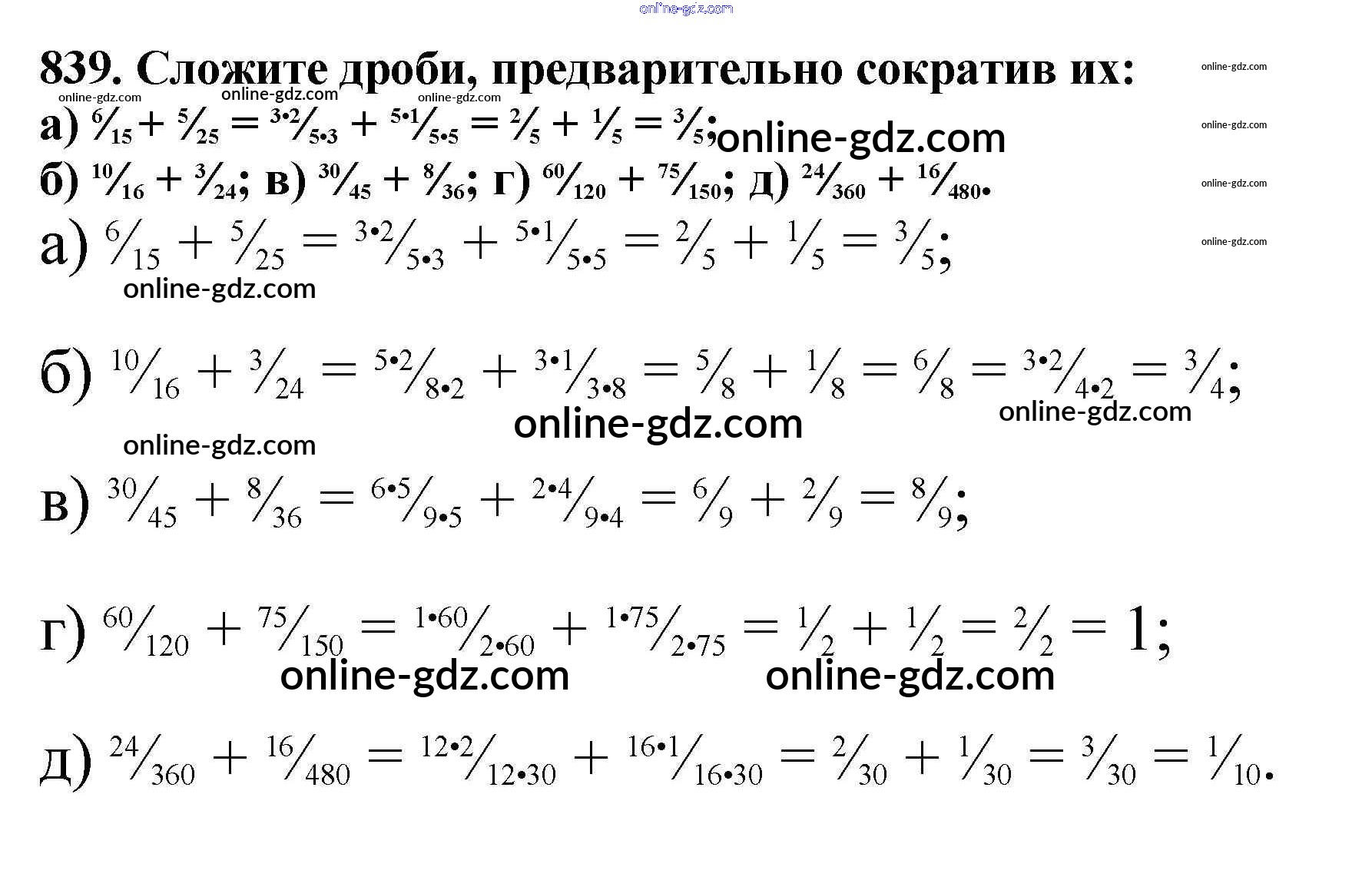 Готовые домашние задания по Математике за 5 класс Учебник Никольский, Потапов МГУ - школе 2016 - Упражнения 839