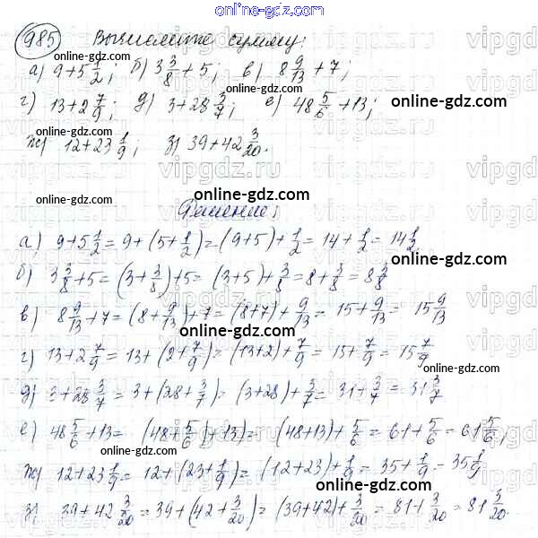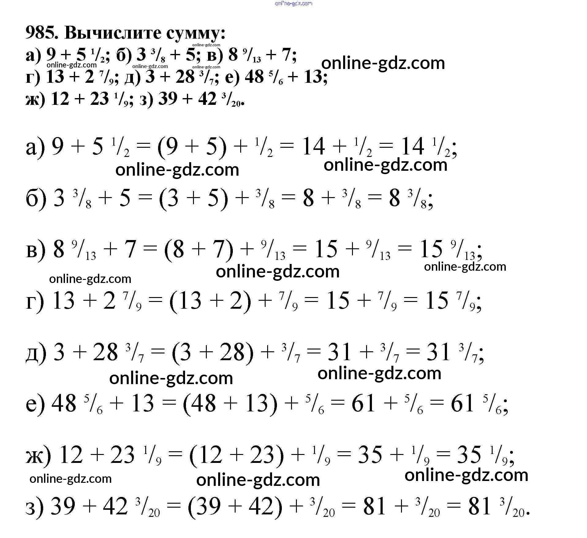 Готовые домашние задания по Математике за 5 класс Учебник Никольский, Потапов МГУ - школе 2016 - Упражнения 985