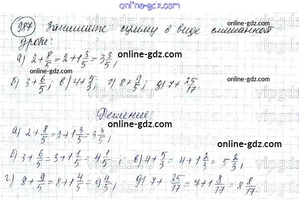 Готовые домашние задания по Математике за 5 класс Учебник Никольский, Потапов МГУ - школе 2016 - Упражнения 987