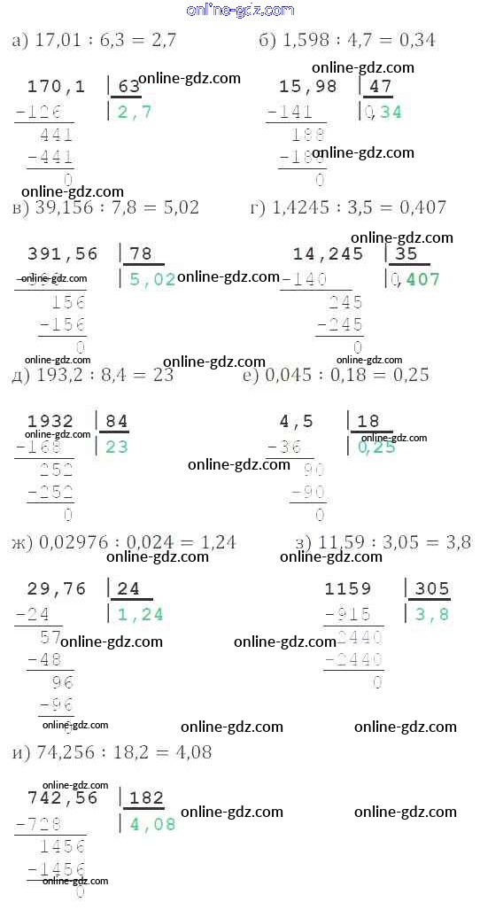 Готовые домашние задания по Математике за 5 класс Учебник Виленкин, Жохов 2018 - §7. Умножение и деление десятичных дробей 634