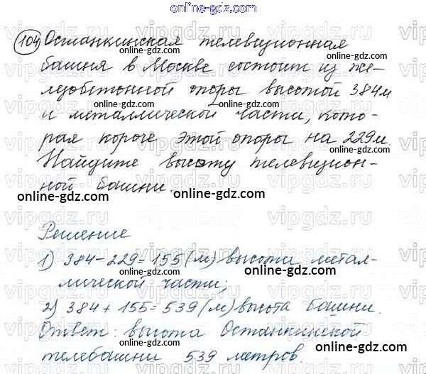 Готовые домашние задания по Математике за 5 класс Учебник Виленкин, Жохов 2013 - Глава 1. Натуральные числа (упражнения с 1 по 849) 104