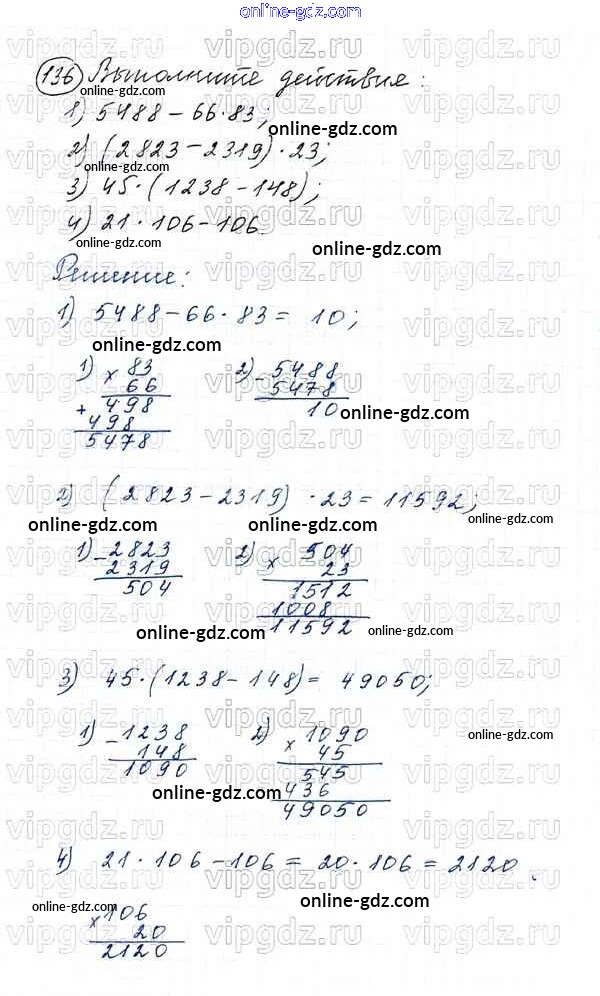 Готовые домашние задания по Математике за 5 класс Учебник Виленкин, Жохов 2013 - Глава 1. Натуральные числа (упражнения с 1 по 849) 136