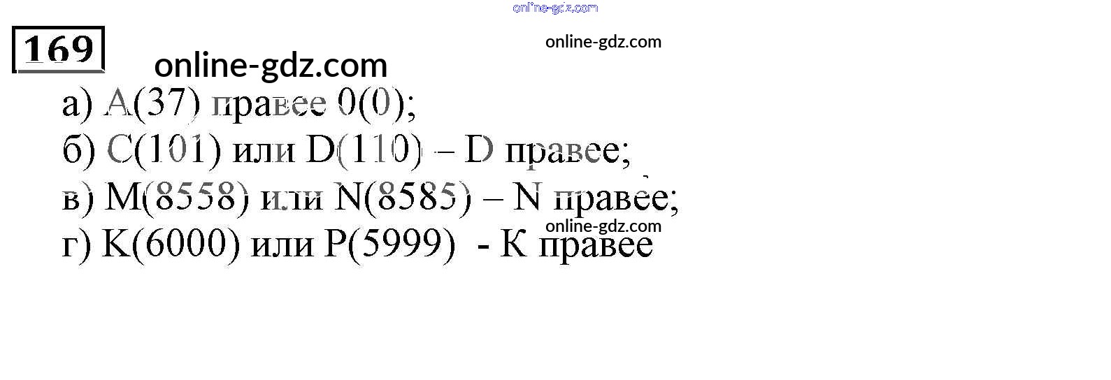 Готовые домашние задания по Математике за 5 класс Учебник Виленкин, Жохов 2013 - Глава 1. Натуральные числа (упражнения с 1 по 849) 169