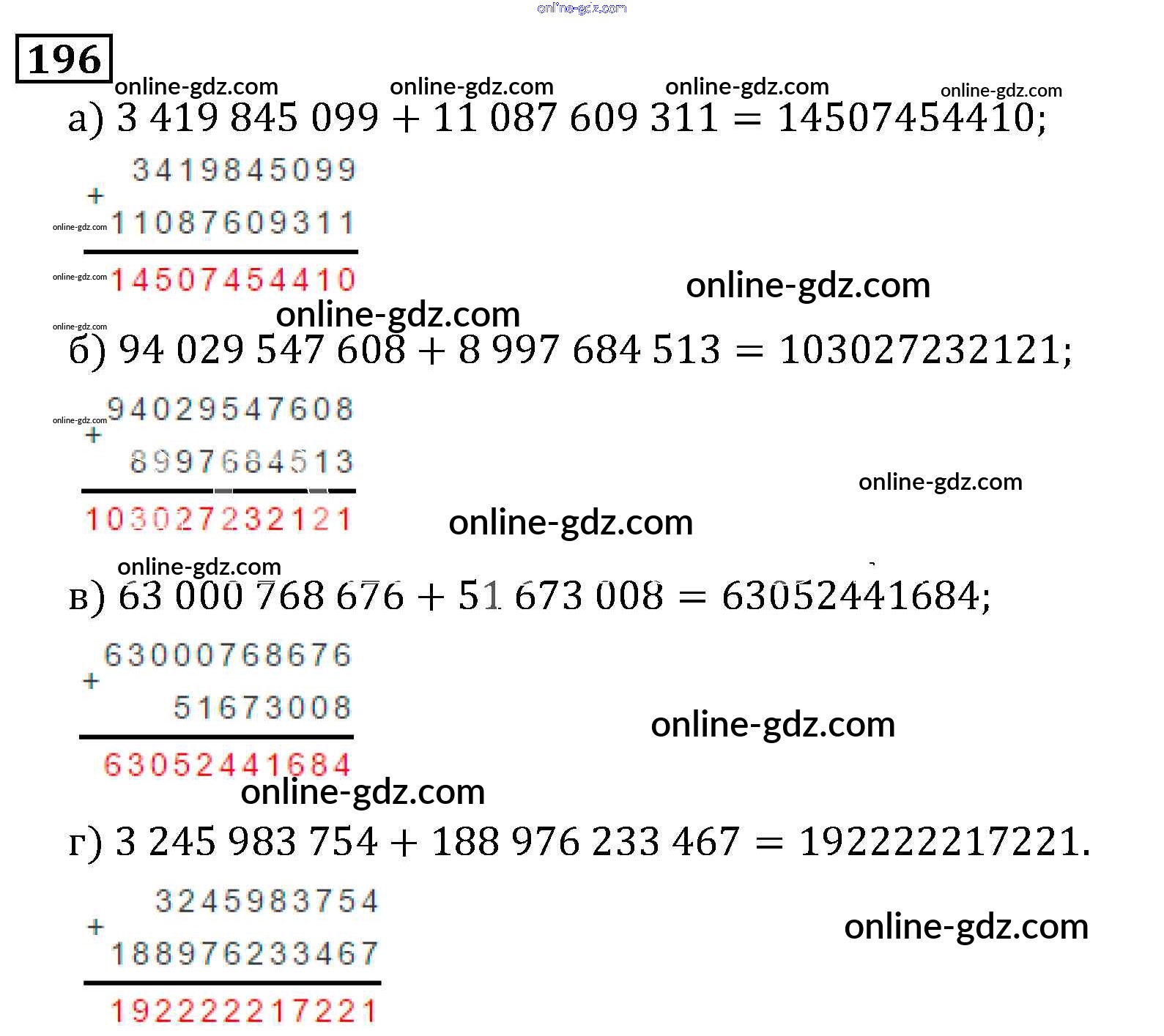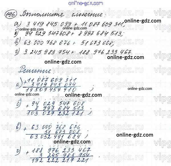 Готовые домашние задания по Математике за 5 класс Учебник Виленкин, Жохов 2013 - Глава 1. Натуральные числа (упражнения с 1 по 849) 196