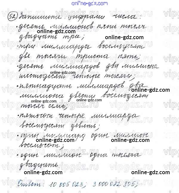 Готовые домашние задания по Математике за 5 класс Учебник Виленкин, Жохов 2013 - Глава 1. Натуральные числа (упражнения с 1 по 849) 52