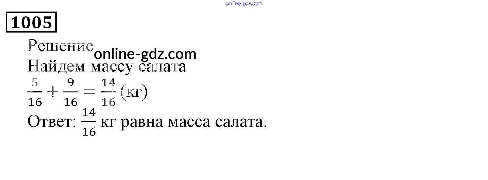 Готовые домашние задания по Математике за 5 класс Учебник Виленкин, Жохов 2013 - Глава 2. Дробные числа (упражнения с 850 по 1849) 1005