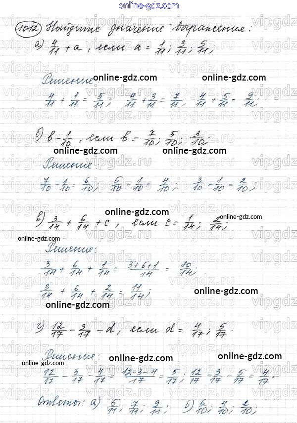 Готовые домашние задания по Математике за 5 класс Учебник Виленкин, Жохов 2013 - Глава 2. Дробные числа (упражнения с 850 по 1849) 1012