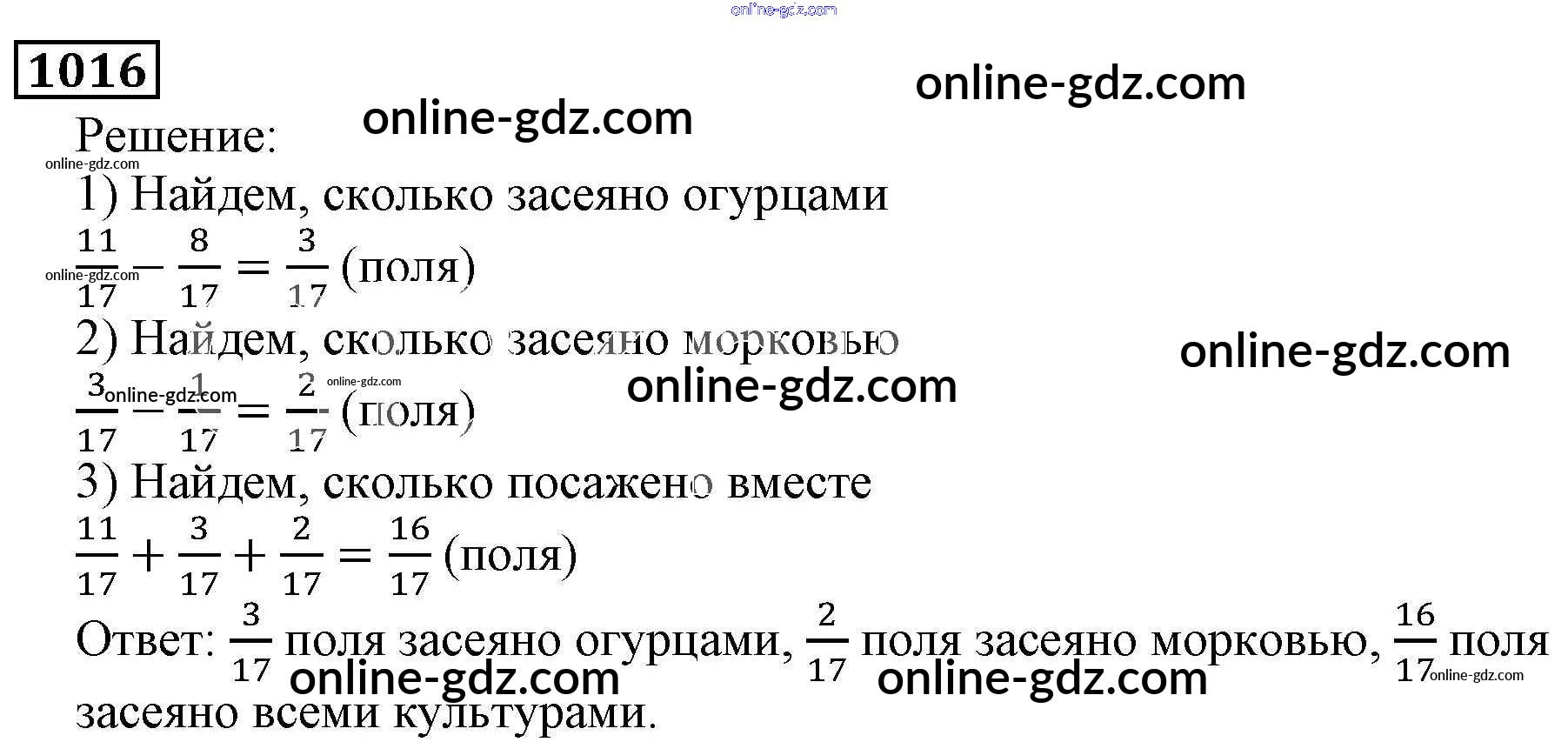 Готовые домашние задания по Математике за 5 класс Учебник Виленкин, Жохов 2013 - Глава 2. Дробные числа (упражнения с 850 по 1849) 1016
