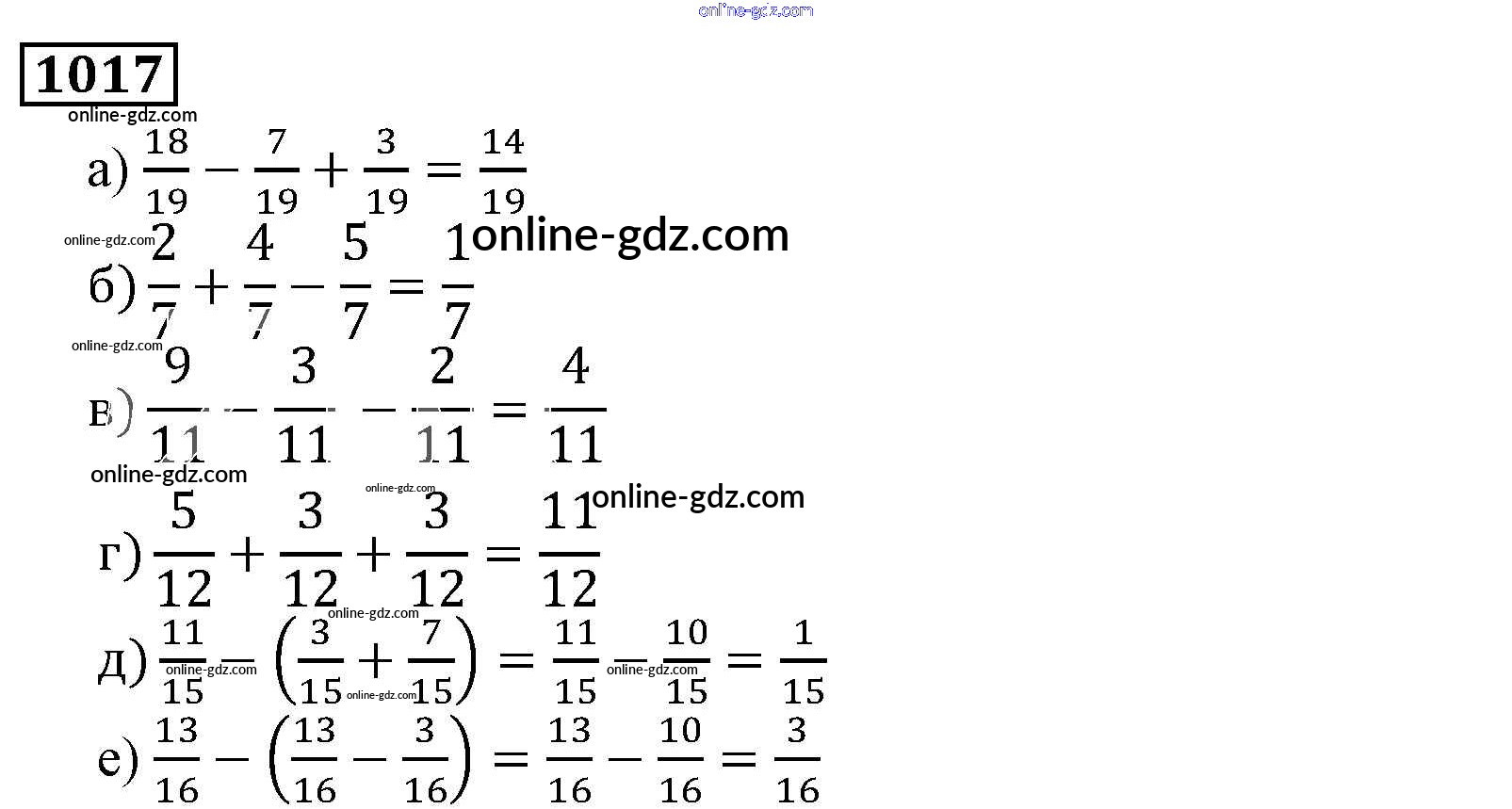 Готовые домашние задания по Математике за 5 класс Учебник Виленкин, Жохов 2013 - Глава 2. Дробные числа (упражнения с 850 по 1849) 1017