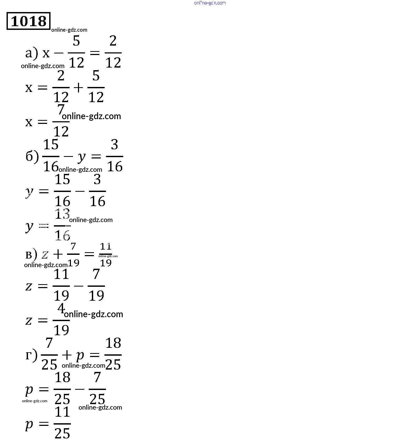 Готовые домашние задания по Математике за 5 класс Учебник Виленкин, Жохов 2013 - Глава 2. Дробные числа (упражнения с 850 по 1849) 1018