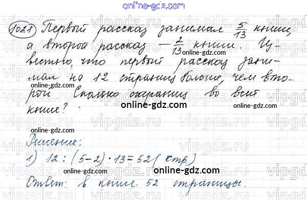Готовые домашние задания по Математике за 5 класс Учебник Виленкин, Жохов 2013 - Глава 2. Дробные числа (упражнения с 850 по 1849) 1021