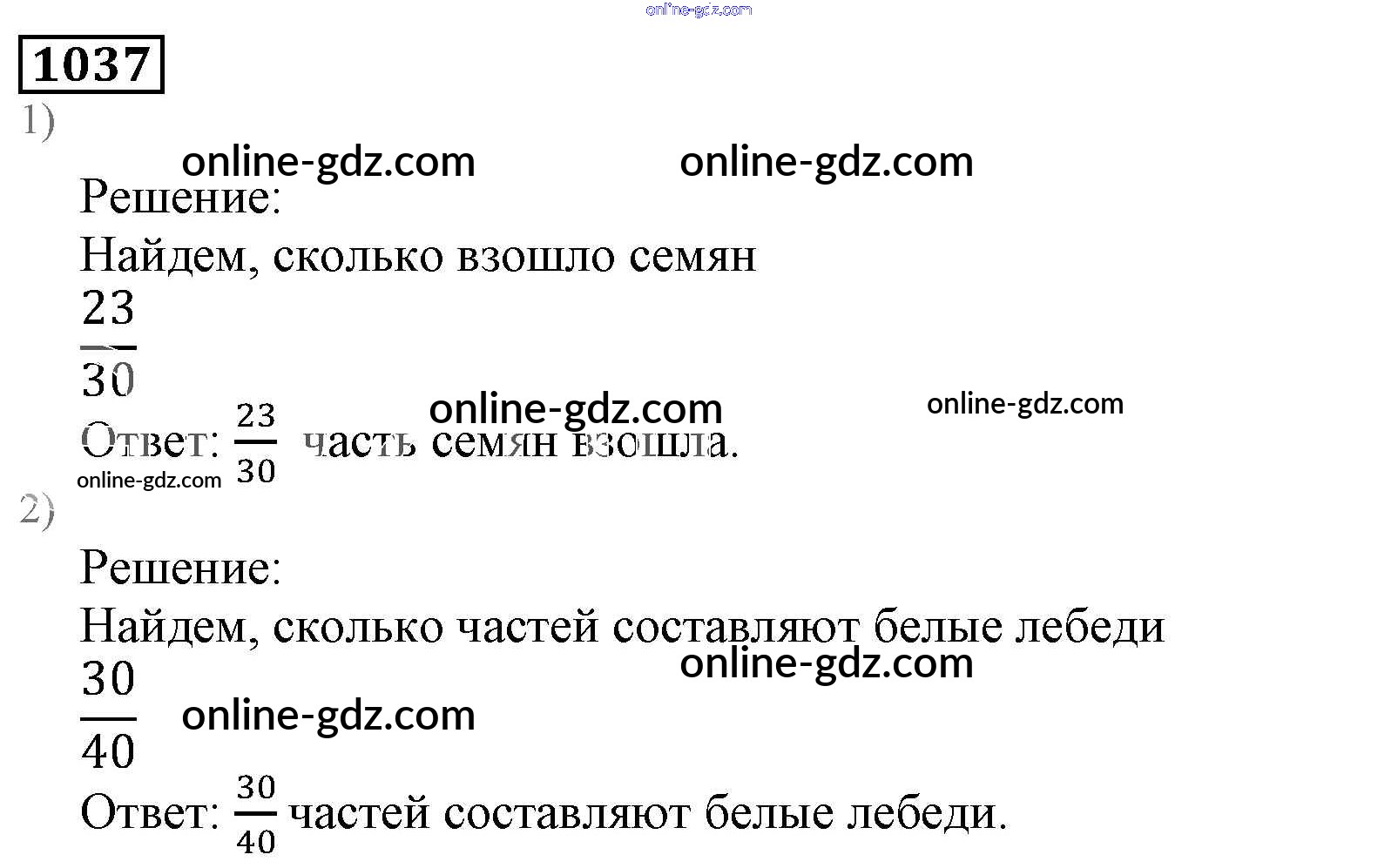 Готовые домашние задания по Математике за 5 класс Учебник Виленкин, Жохов 2013 - Глава 2. Дробные числа (упражнения с 850 по 1849) 1037