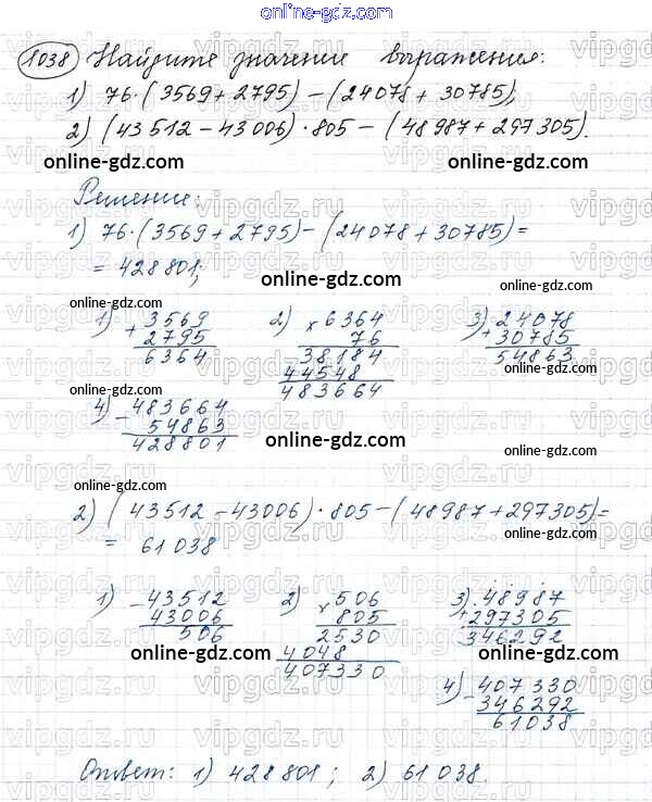 Готовые домашние задания по Математике за 5 класс Учебник Виленкин, Жохов 2013 - Глава 2. Дробные числа (упражнения с 850 по 1849) 1038