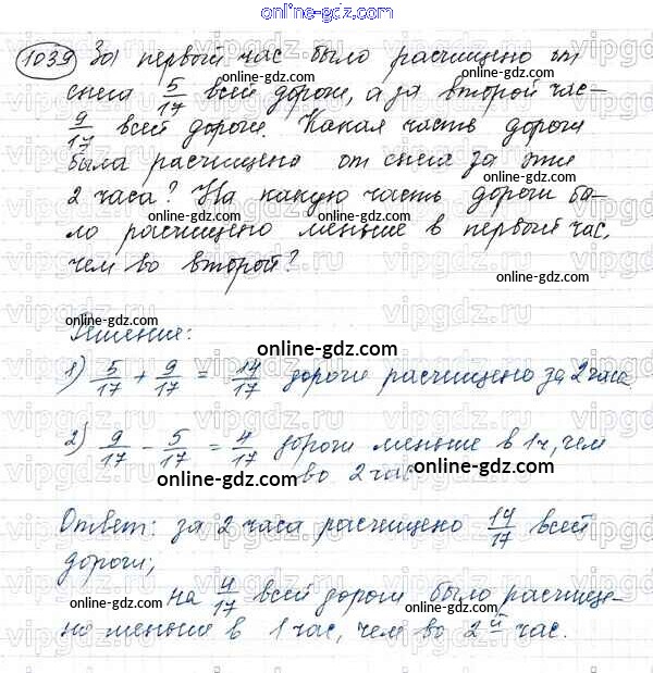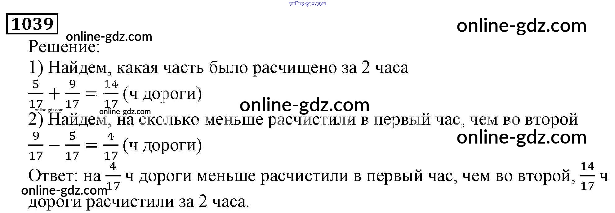 Готовые домашние задания по Математике за 5 класс Учебник Виленкин, Жохов 2013 - Глава 2. Дробные числа (упражнения с 850 по 1849) 1039