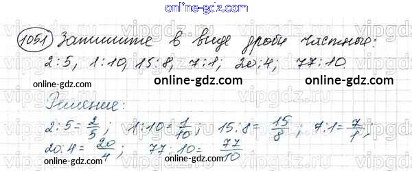 Готовые домашние задания по Математике за 5 класс Учебник Виленкин, Жохов 2013 - Глава 2. Дробные числа (упражнения с 850 по 1849) 1051