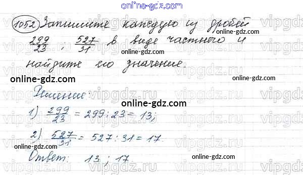 Готовые домашние задания по Математике за 5 класс Учебник Виленкин, Жохов 2013 - Глава 2. Дробные числа (упражнения с 850 по 1849) 1052