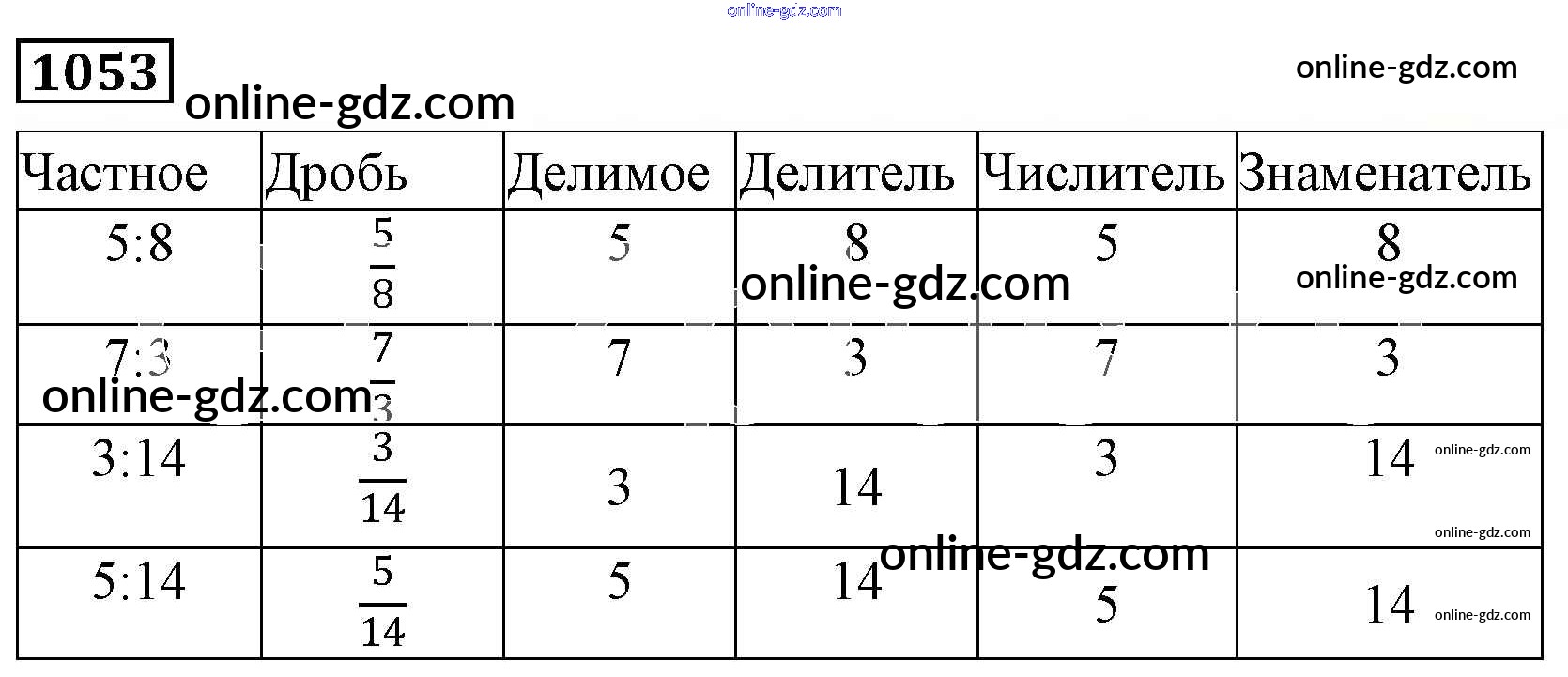 Готовые домашние задания по Математике за 5 класс Учебник Виленкин, Жохов 2013 - Глава 2. Дробные числа (упражнения с 850 по 1849) 1053