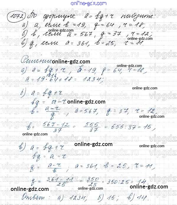 Готовые домашние задания по Математике за 5 класс Учебник Виленкин, Жохов 2013 - Глава 2. Дробные числа (упражнения с 850 по 1849) 1072