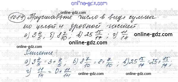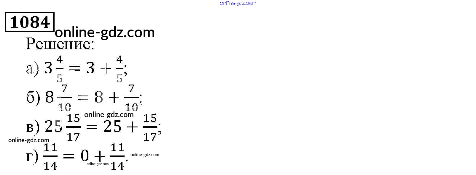 Готовые домашние задания по Математике за 5 класс Учебник Виленкин, Жохов 2013 - Глава 2. Дробные числа (упражнения с 850 по 1849) 1084