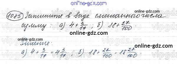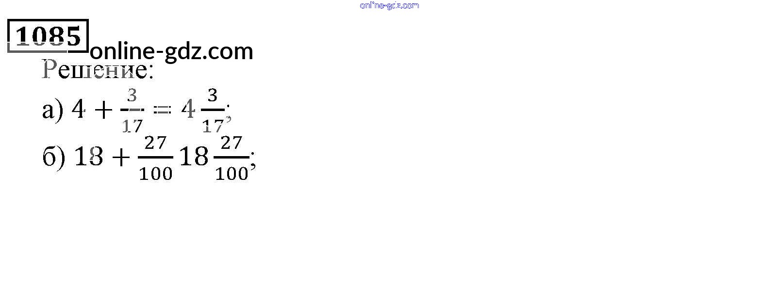 Готовые домашние задания по Математике за 5 класс Учебник Виленкин, Жохов 2013 - Глава 2. Дробные числа (упражнения с 850 по 1849) 1085
