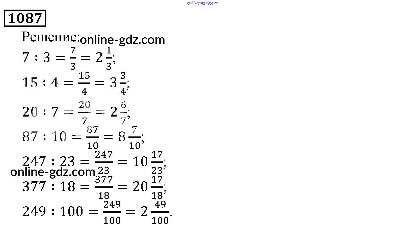 Готовые домашние задания по Математике за 5 класс Учебник Виленкин, Жохов 2013 - Глава 2. Дробные числа (упражнения с 850 по 1849) 1087