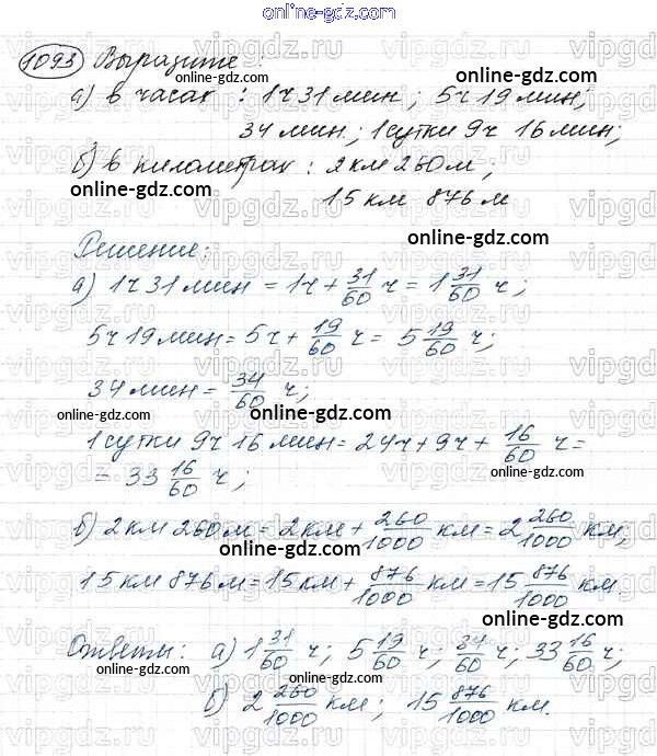 Готовые домашние задания по Математике за 5 класс Учебник Виленкин, Жохов 2013 - Глава 2. Дробные числа (упражнения с 850 по 1849) 1093