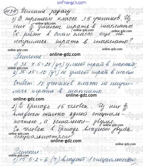 Готовые домашние задания по Математике за 5 класс Учебник Виленкин, Жохов 2013 - Глава 2. Дробные числа (упражнения с 850 по 1849) 1134