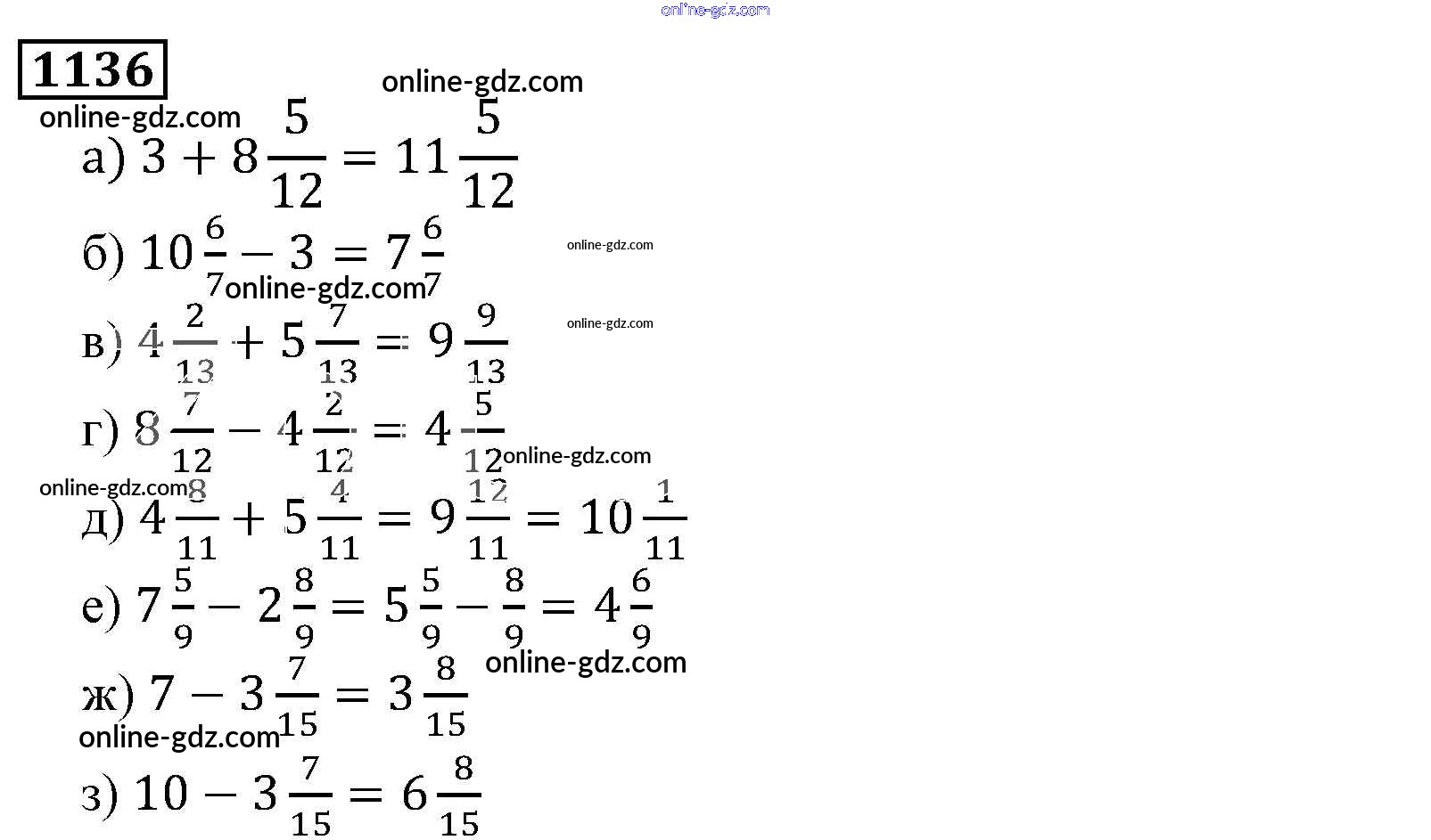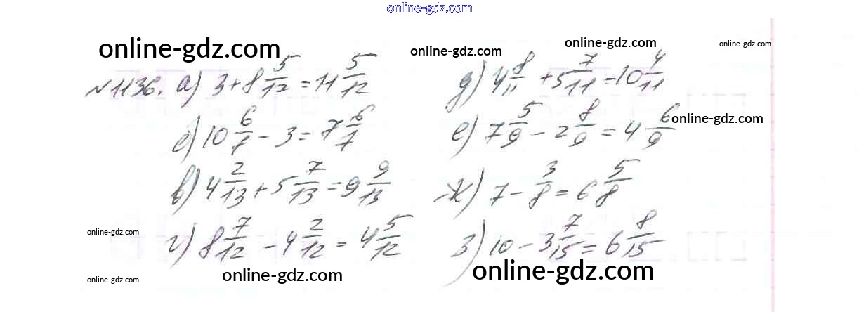 Готовые домашние задания по Математике за 5 класс Учебник Виленкин, Жохов 2013 - Глава 2. Дробные числа (упражнения с 850 по 1849) 1136