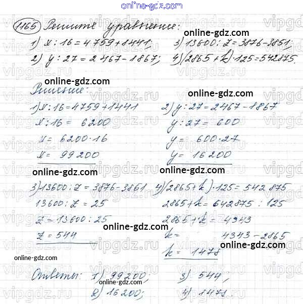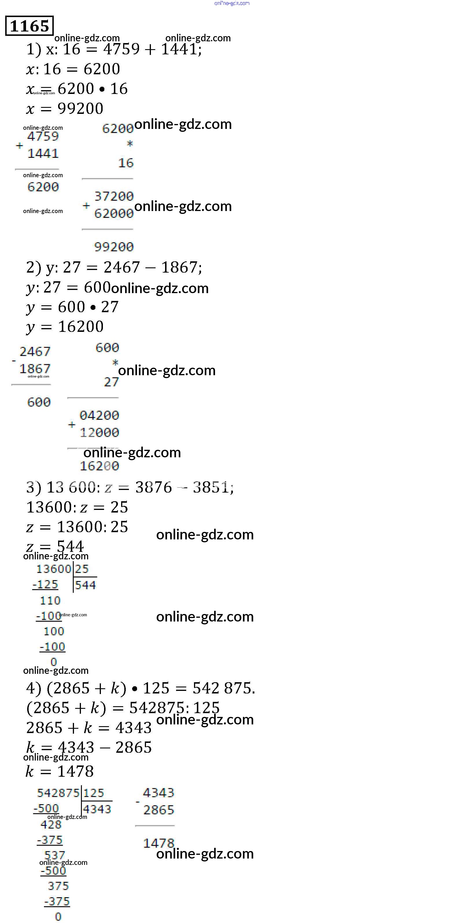 Готовые домашние задания по Математике за 5 класс Учебник Виленкин, Жохов 2013 - Глава 2. Дробные числа (упражнения с 850 по 1849) 1165