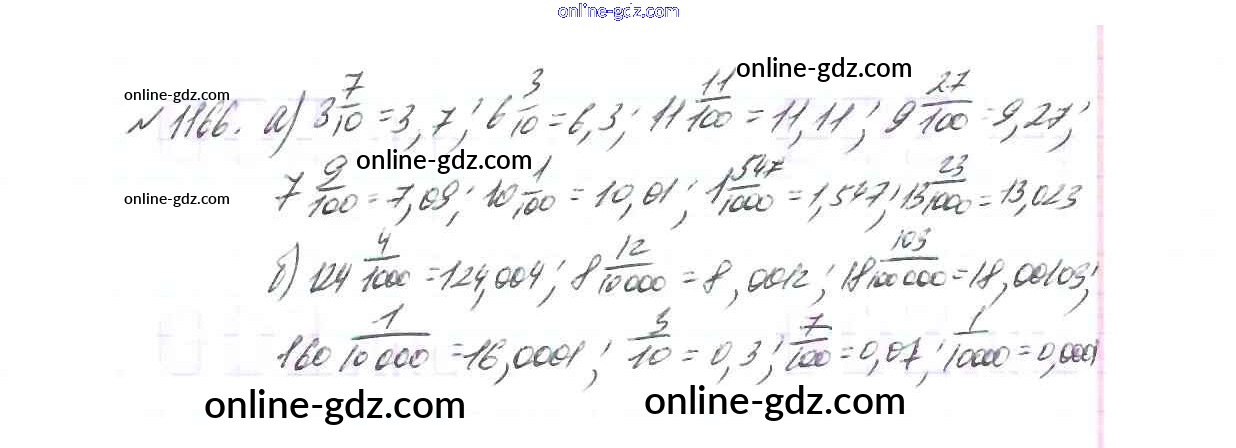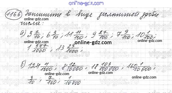 Готовые домашние задания по Математике за 5 класс Учебник Виленкин, Жохов 2013 - Глава 2. Дробные числа (упражнения с 850 по 1849) 1166