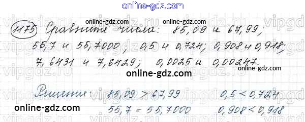 Готовые домашние задания по Математике за 5 класс Учебник Виленкин, Жохов 2013 - Глава 2. Дробные числа (упражнения с 850 по 1849) 1175