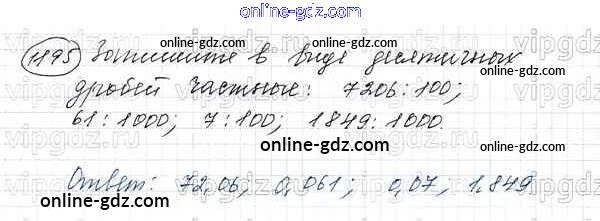 Готовые домашние задания по Математике за 5 класс Учебник Виленкин, Жохов 2013 - Глава 2. Дробные числа (упражнения с 850 по 1849) 1195