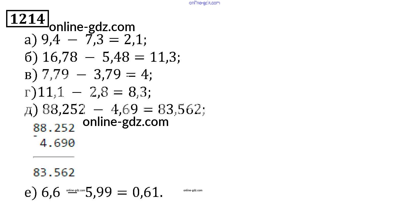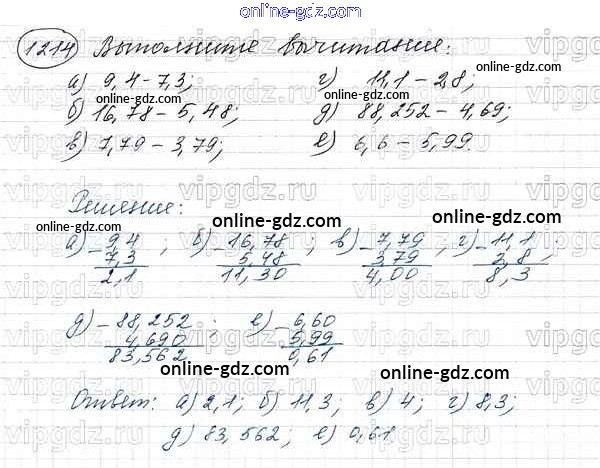 Готовые домашние задания по Математике за 5 класс Учебник Виленкин, Жохов 2013 - Глава 2. Дробные числа (упражнения с 850 по 1849) 1214