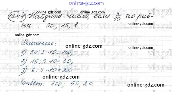Готовые домашние задания по Математике за 5 класс Учебник Виленкин, Жохов 2013 - Глава 2. Дробные числа (упражнения с 850 по 1849) 1244