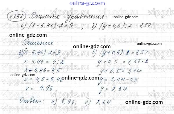 Готовые домашние задания по Математике за 5 класс Учебник Виленкин, Жохов 2013 - Глава 2. Дробные числа (упражнения с 850 по 1849) 1358