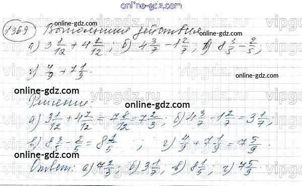 Готовые домашние задания по Математике за 5 класс Учебник Виленкин, Жохов 2013 - Глава 2. Дробные числа (упражнения с 850 по 1849) 1369