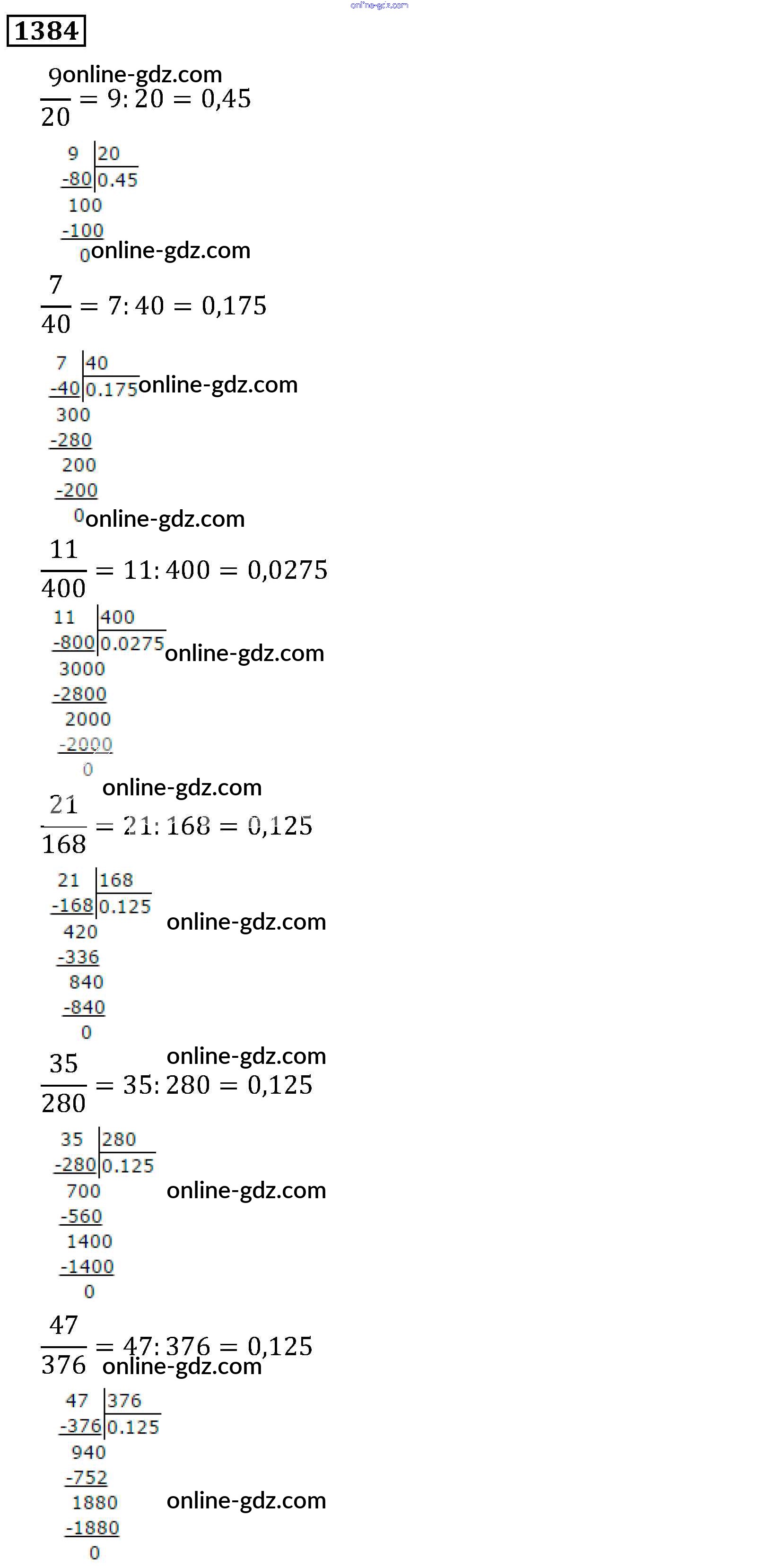 Готовые домашние задания по Математике за 5 класс Учебник Виленкин, Жохов 2013 - Глава 2. Дробные числа (упражнения с 850 по 1849) 1384