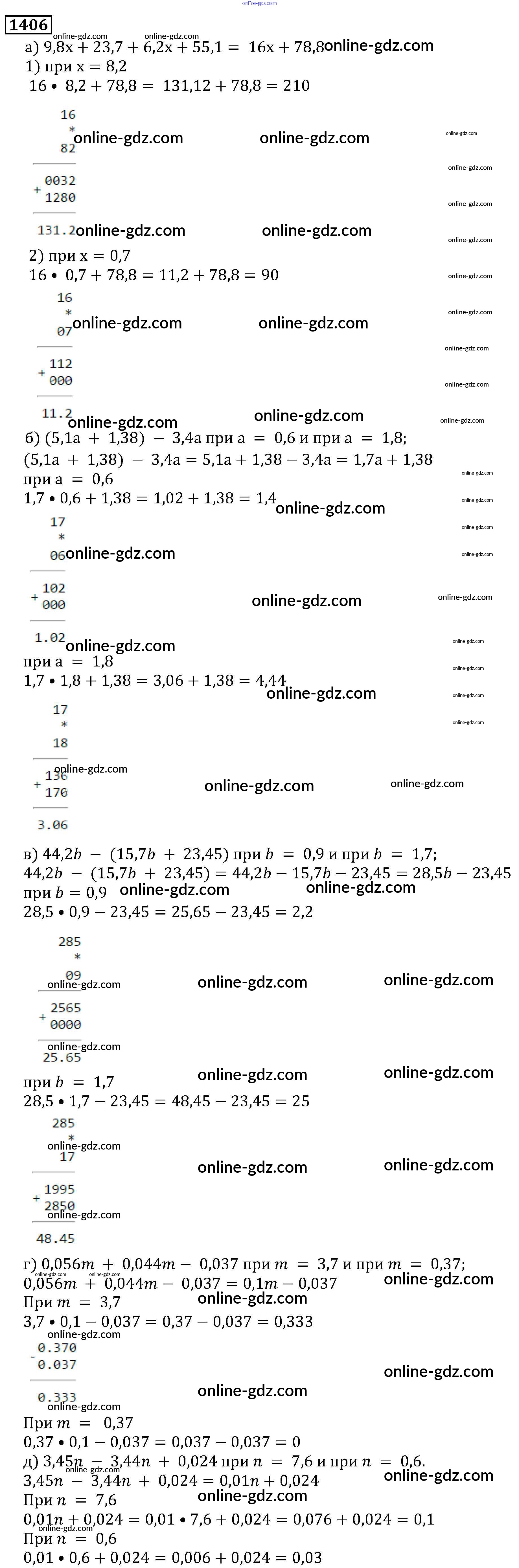 Готовые домашние задания по Математике за 5 класс Учебник Виленкин, Жохов 2013 - Глава 2. Дробные числа (упражнения с 850 по 1849) 1406