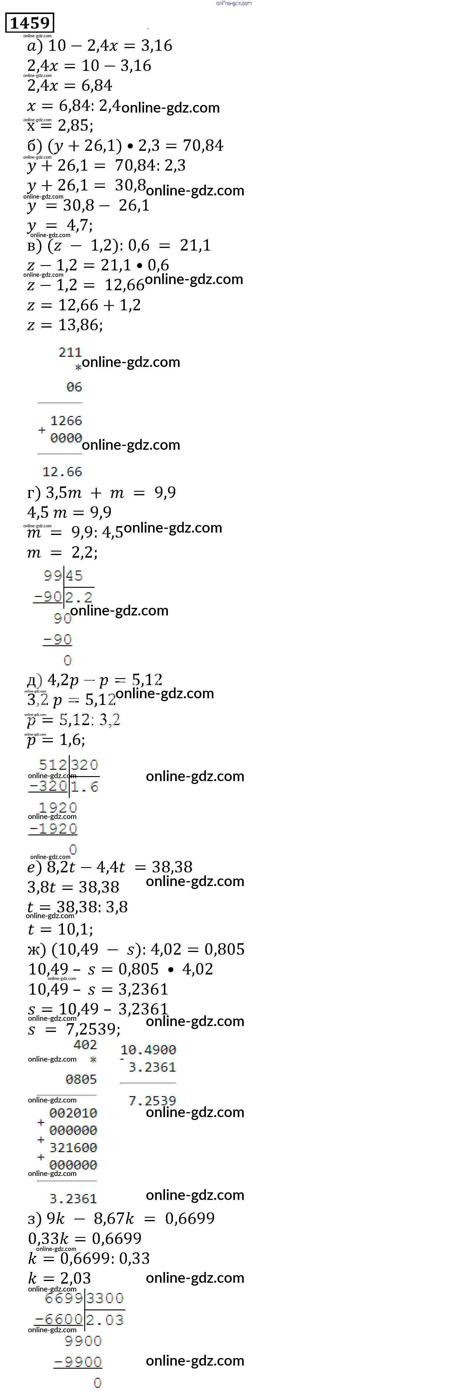 Готовые домашние задания по Математике за 5 класс Учебник Виленкин, Жохов 2013 - Глава 2. Дробные числа (упражнения с 850 по 1849) 1459