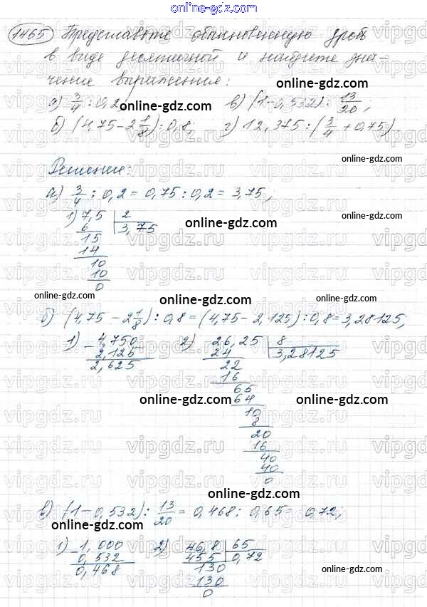 Готовые домашние задания по Математике за 5 класс Учебник Виленкин, Жохов 2013 - Глава 2. Дробные числа (упражнения с 850 по 1849) 1465