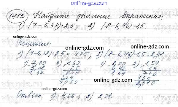 Готовые домашние задания по Математике за 5 класс Учебник Виленкин, Жохов 2013 - Глава 2. Дробные числа (упражнения с 850 по 1849) 1482