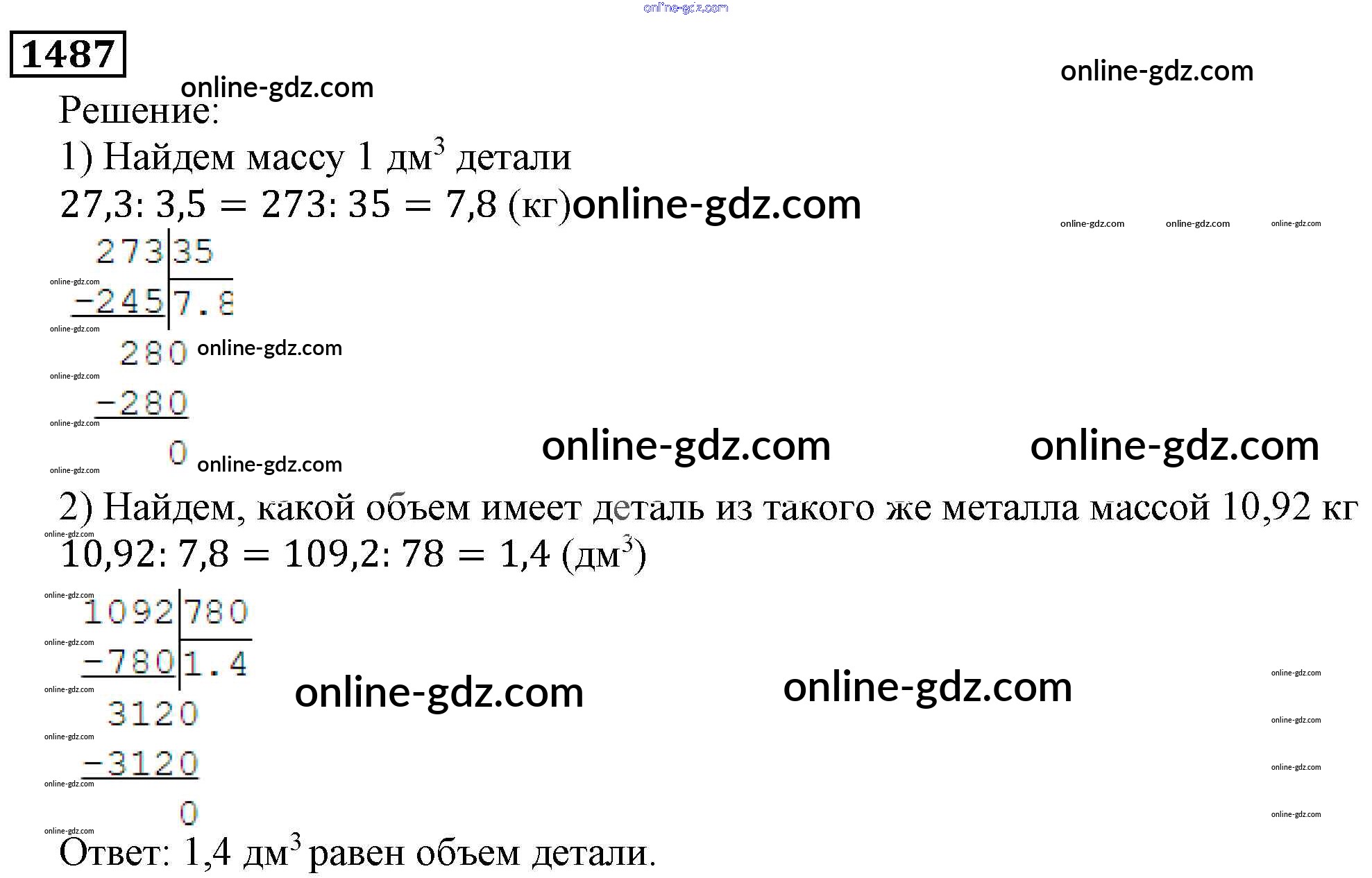 Готовые домашние задания по Математике за 5 класс Учебник Виленкин, Жохов 2013 - Глава 2. Дробные числа (упражнения с 850 по 1849) 1487
