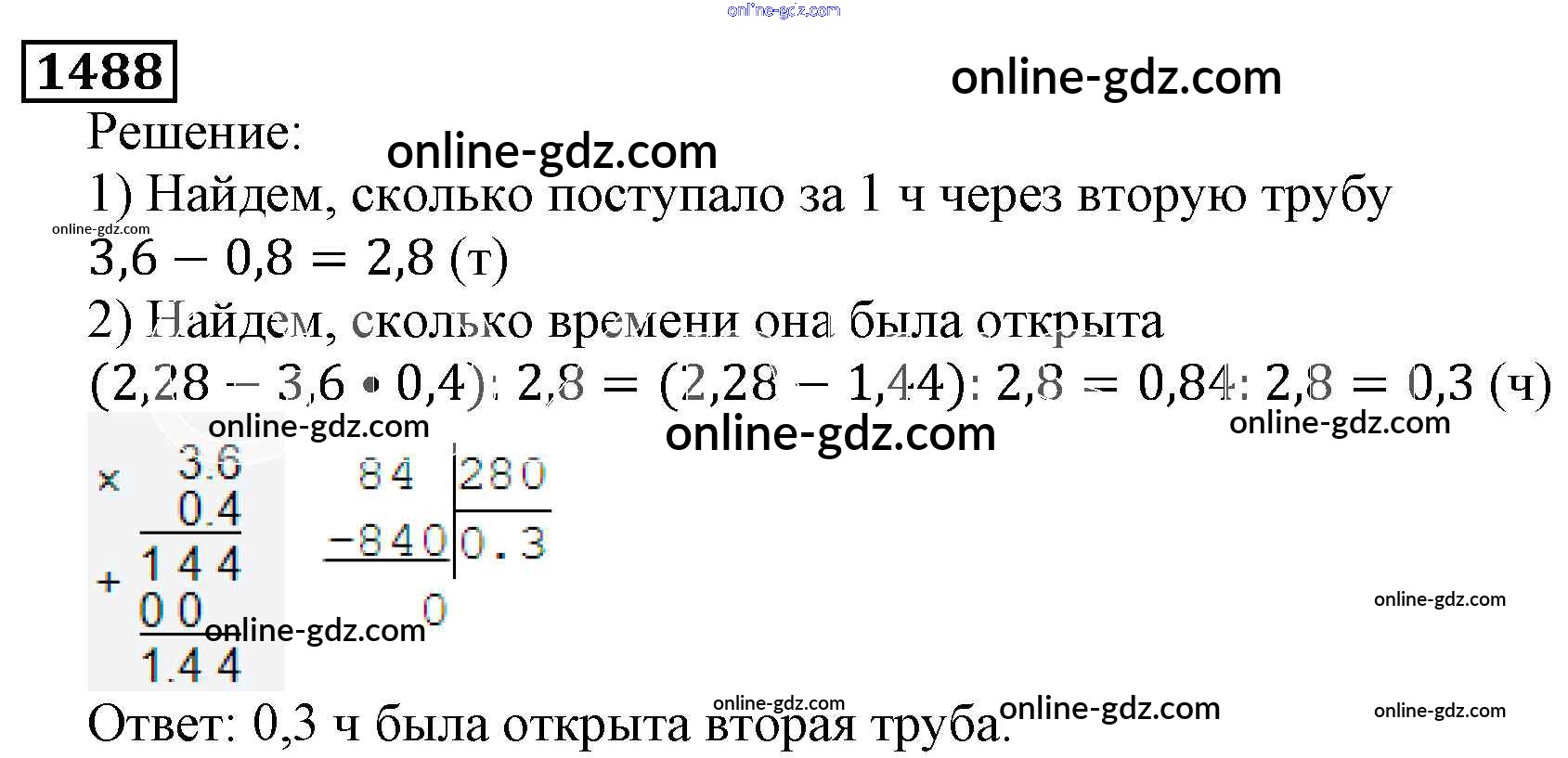 Готовые домашние задания по Математике за 5 класс Учебник Виленкин, Жохов 2013 - Глава 2. Дробные числа (упражнения с 850 по 1849) 1488