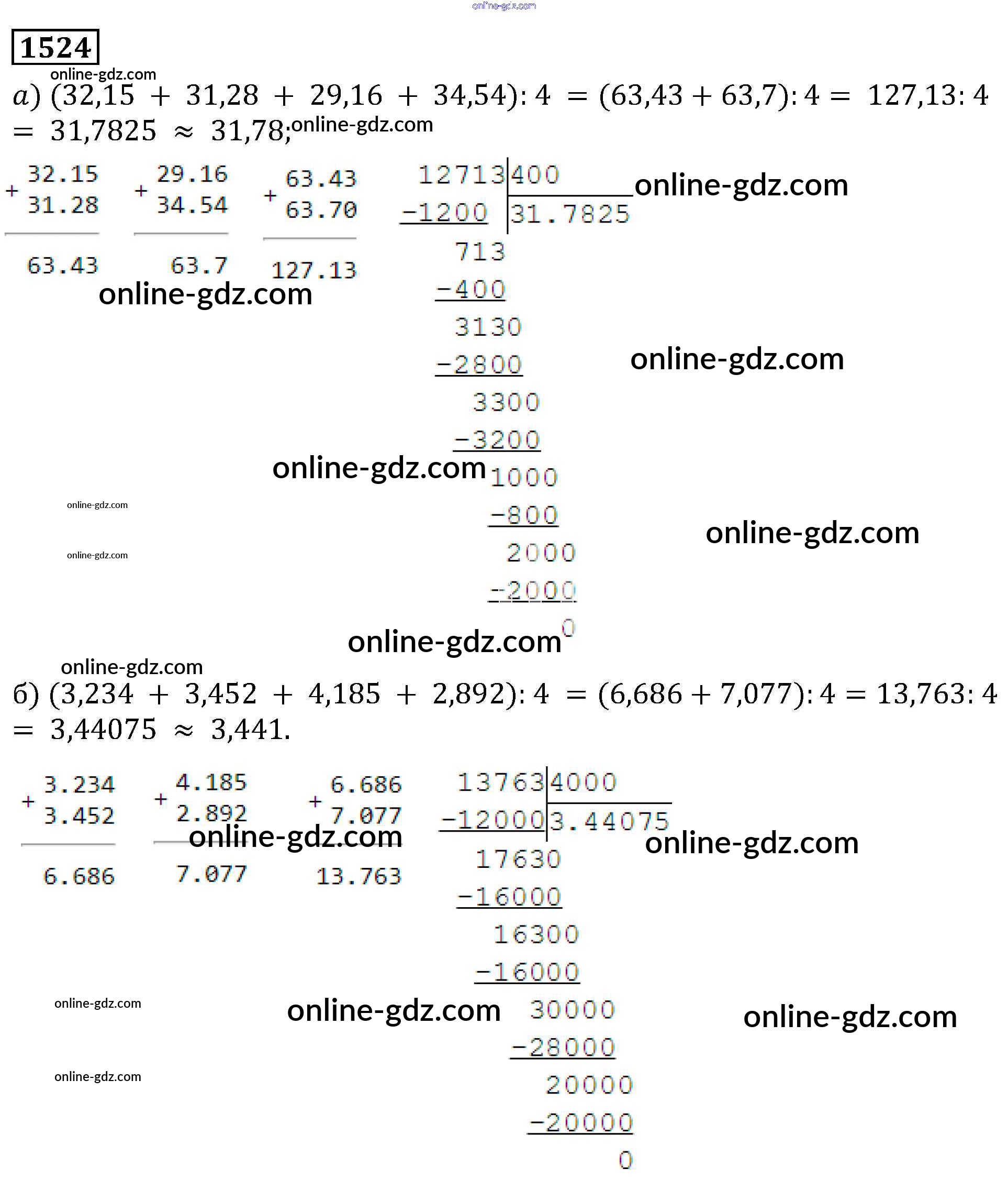 Готовые домашние задания по Математике за 5 класс Учебник Виленкин, Жохов 2013 - Глава 2. Дробные числа (упражнения с 850 по 1849) 1524