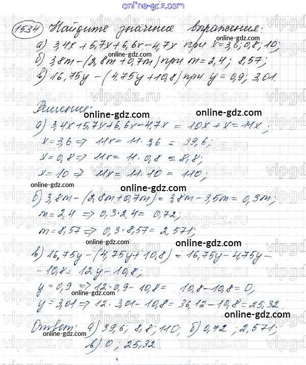 Готовые домашние задания по Математике за 5 класс Учебник Виленкин, Жохов 2013 - Глава 2. Дробные числа (упражнения с 850 по 1849) 1534
