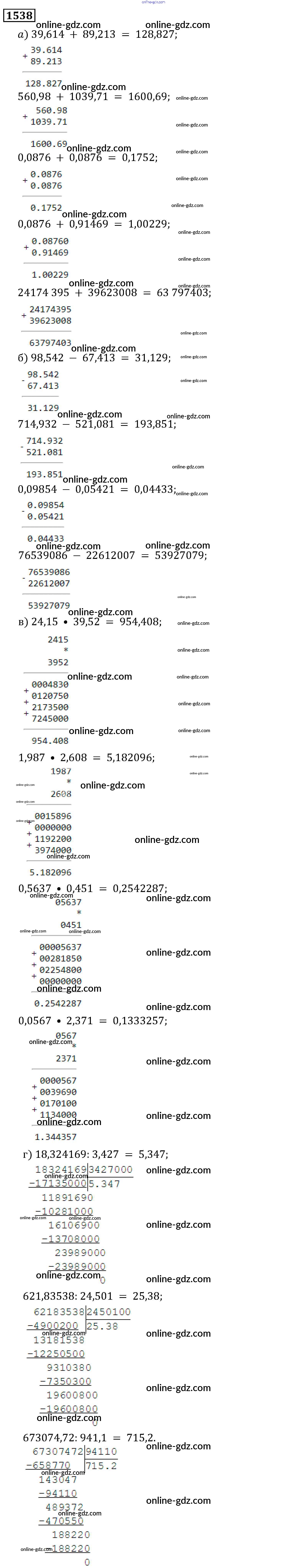 Готовые домашние задания по Математике за 5 класс Учебник Виленкин, Жохов 2013 - Глава 2. Дробные числа (упражнения с 850 по 1849) 1538