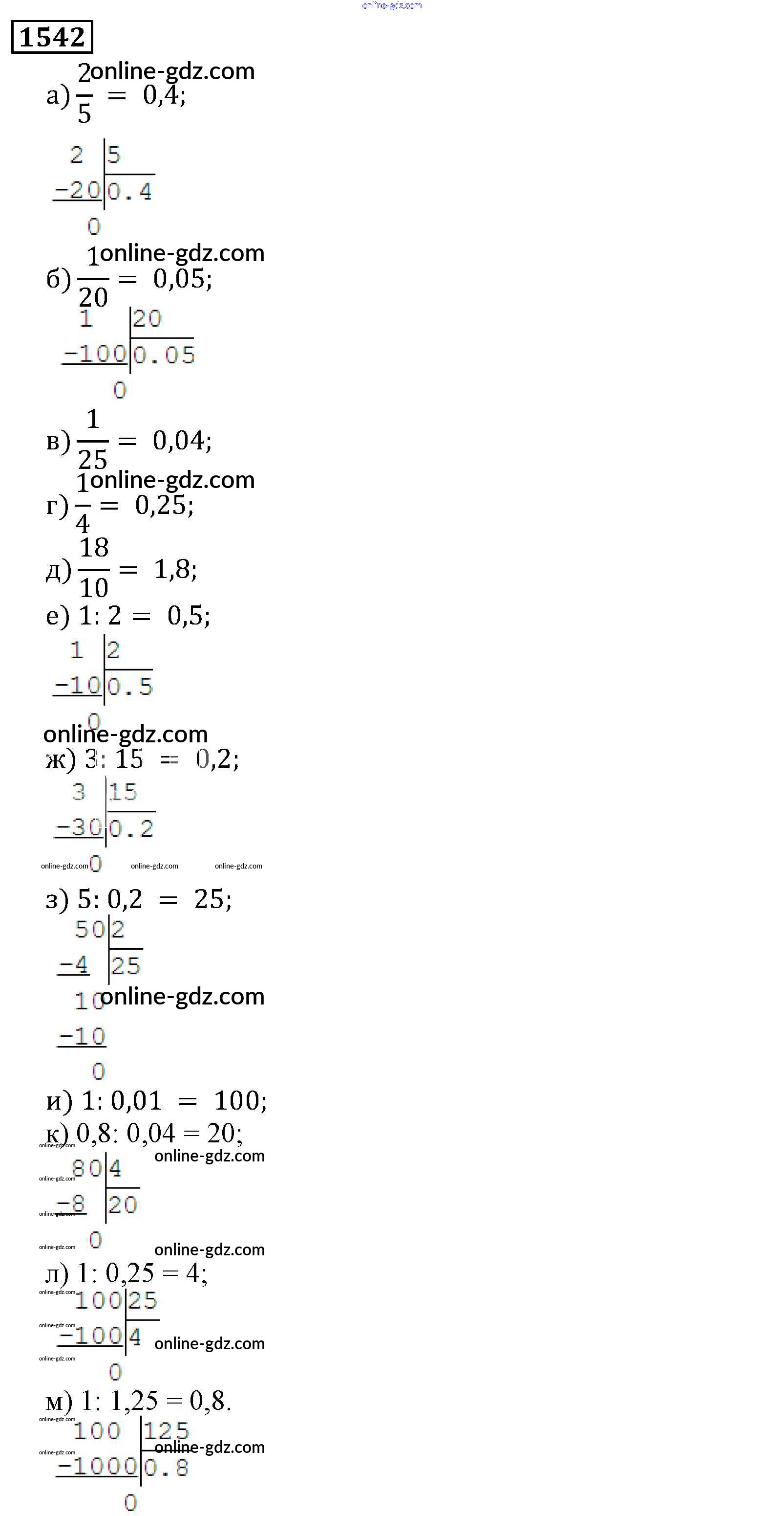 Готовые домашние задания по Математике за 5 класс Учебник Виленкин, Жохов 2013 - Глава 2. Дробные числа (упражнения с 850 по 1849) 1542